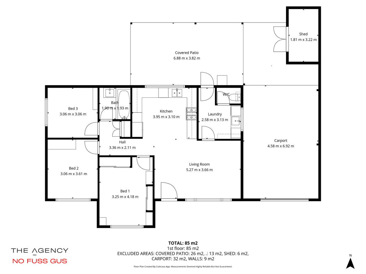 Accommodation includes three freshly painted bedrooms, all with new carpet, while the master enjoys the added convenience of a new built-in wardrobe. Throughout the home, LED downlights enhance the modern feel, and instant gas hot water adds efficiency.
